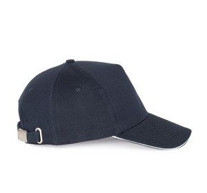 100% zwaar geborsteld sergé katoen. 5 verstevigde panelen. Klep met contstrasterende bies. Katoenen zweetband. Verstelbare gesp-sluiting.