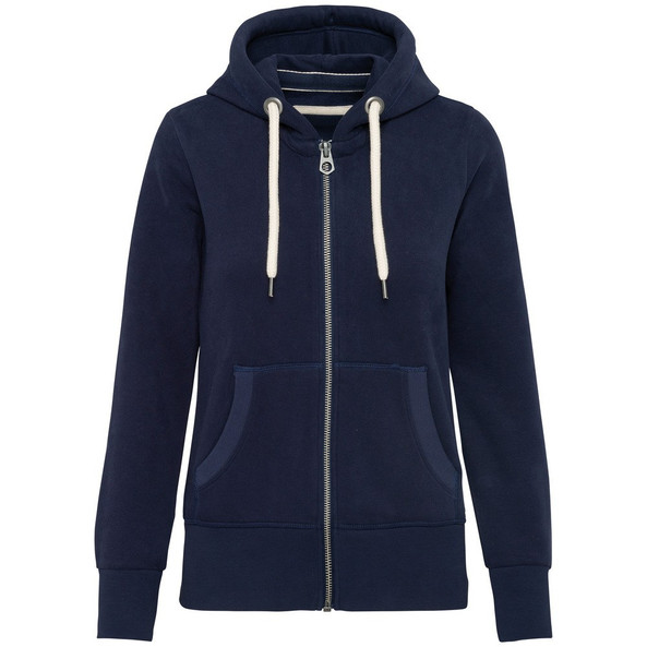 Rond en contrasterend capuchonkoordje.