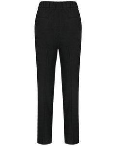 Binnenste tailleband afwerking in hoofdmateriaal met toon op toon bies.