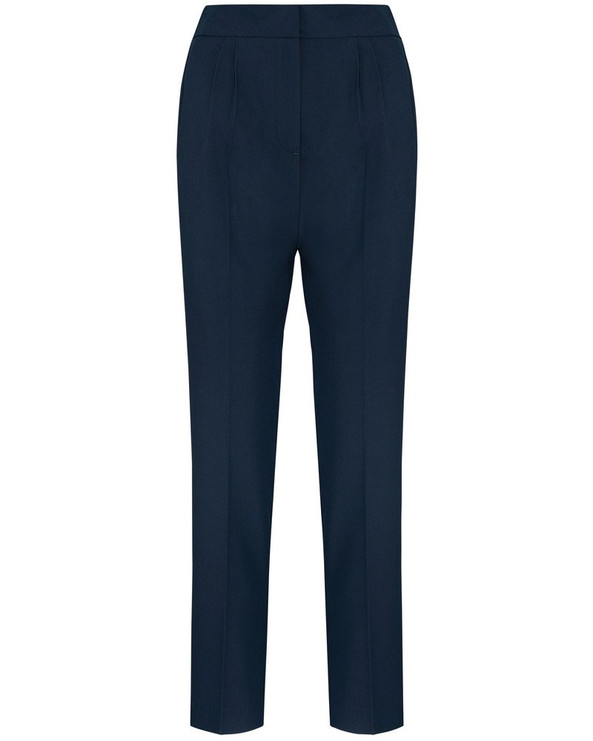 Binnenste tailleband afwerking in hoofdmateriaal met toon op toon bies.