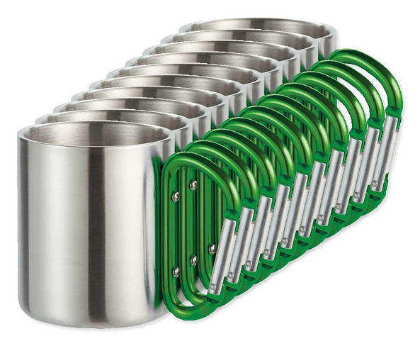 Lichtgewicht roestvrijstalen mok met karabijnhaak, ideaal voor outdoor en personalisatie. Deze dubbelwandige mok van 220 ml is duurzaam en handig. Deze mok is ontworpen voor wie wil opvallen tijdens buitenavonturen. De dubbelwandige constructie helpt de temperatuur vast te houden en biedt stevigheid zonder extra gewicht. Dankzij de geïntegreerde karabijnhaak kan de mok eenvoudig aan rugzakken of uitrusting worden bevestigd, wat hem favoriet maakt bij wandelaars en kampeerders. Beschikbaar als blanco basis voor minimalistisch gebruik of als aanpasbaar canvas voor promotionele doeleinden. Of u nu in bulk bestelt voor een bedrijfsuitje of als merchandise voor een outdoor-merk, de roestvrijstalen afwerking zorgt voor een professionele uitstraling en langdurige prestaties.