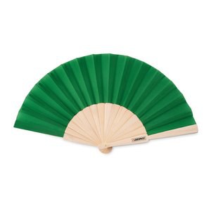 Pak van 30 GiftRetail MO9532 - Groen - FANNY WOOD Elegante Houten Handwaaier met Polyester Stof