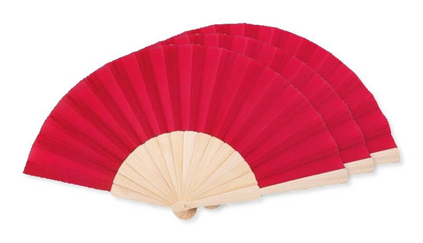 Pak van 30 GiftRetail MO9532 - Rood - FANNY WOOD Elegante Houten Handwaaier met Polyester Stof