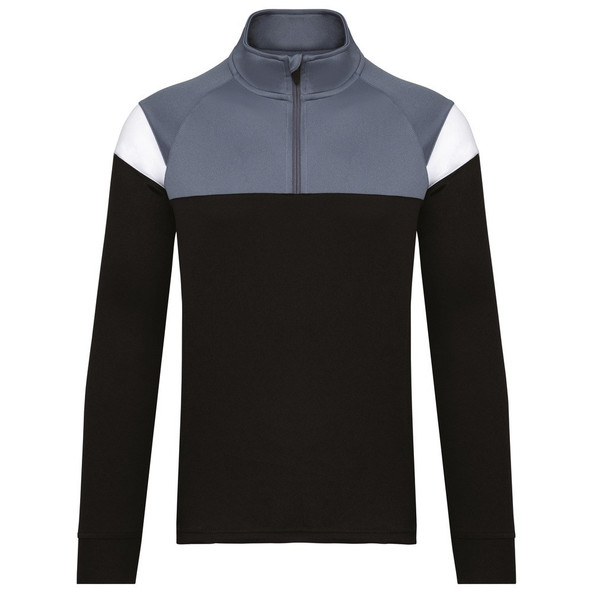 Contrasterend inzetsel aan schouder en borst.