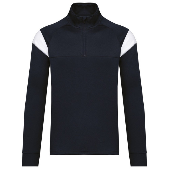 Raglanmouwen met contrasterende inzetsels aan de schouder.