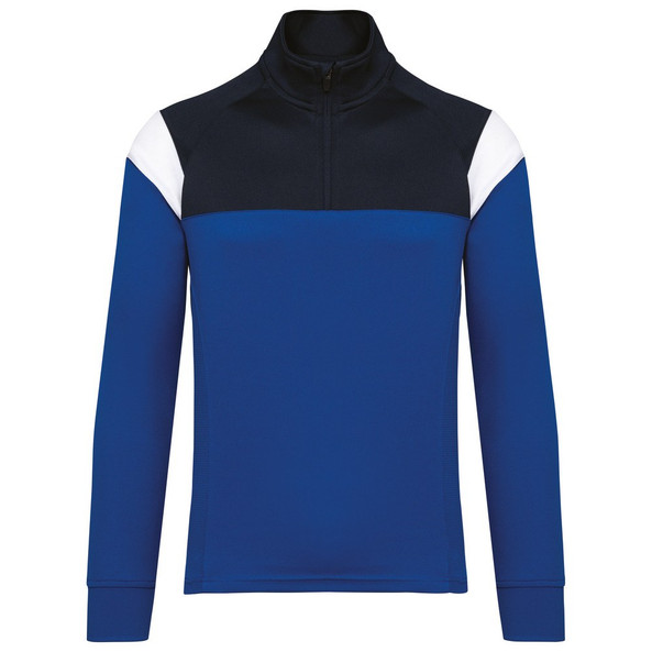 Raglanmouwen met contrasterende inzetsels aan de schouder.
