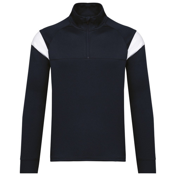 Raglanmouwen met contrasterende inzetsels aan de schouder.