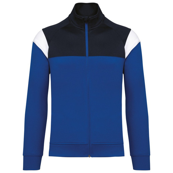 Raglanmouwen met contrasterende inzetsels aan de schouder.