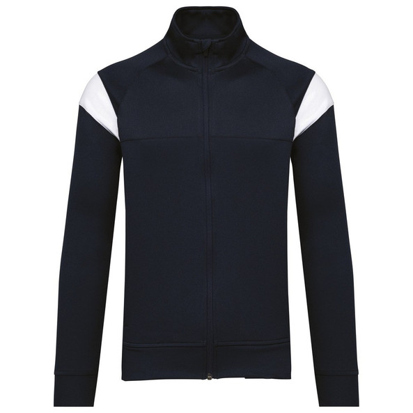Contrasterend inzetsel aan schouder en borst.