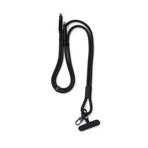 Stamina IA1862 - Zwart - DENKI Lanyard van gerecycled nylon met smartphonehouderfunctie en Type-C-verbindingskabel aan beide uiteinden