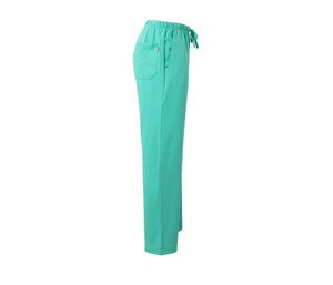 Elastische tailleband. Verstelbaar met riempjes. Vloeistofafstotende stof met antibacteriële behandeling. 3 zakken (2 Franse zakken, 1 opgezette achterzak).