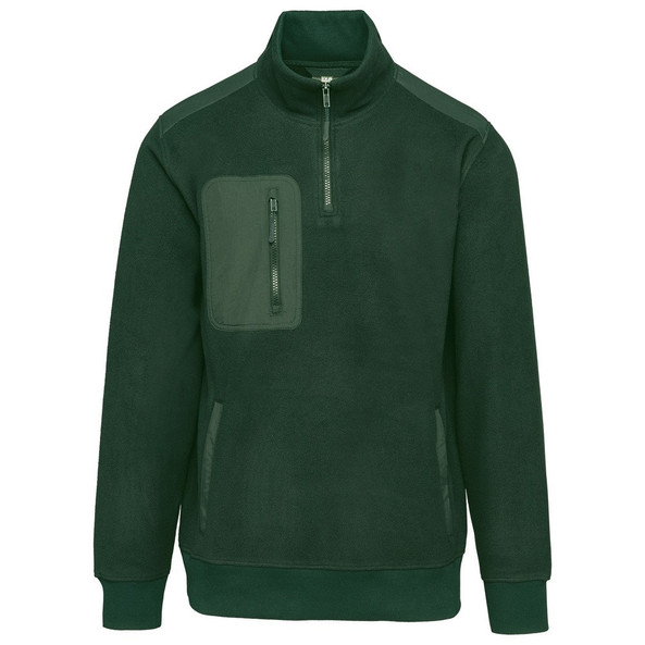 1 afgerond borstzakje met rits en ritstrekker in taslan met toon-op-toon stiksel rechts (bij het dragen).